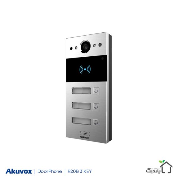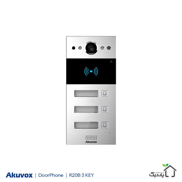 آیفون تصویری هوشمند Akuvox مدل R20B-3 یک اینترکام هوشمند با قابلیت پشتیبانی ومدیریت 3 واحد و 2 رله (2درب) می باشد. R20B-3 دارای یک بدنه مقاوم از جنس آلومینیوم می باشد که آن را در برابر خرابکاری، ضربه و ایجاد خط و خش محفوظ می نماید. این اینترکام هوشمند را می توان به کنترلر مرکزی خانه هوشمند Zipatile، پنل های تصویری خانه هوشمند (با قابلیت پشتیبانی از پروتکل SIP)، مانیتورهای هوشمند Akuvox و تلفن هوشمند (SIP Phone) متصل نمود.