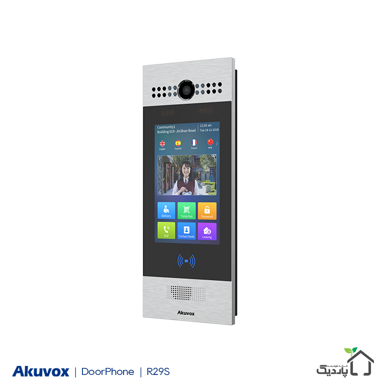 اینترکام Akuvox مدل R29S یک ایفون هوشمند با صفحه نمایش لمسی 7 اینچ با قابلیت پشتیبانی و مدیریت از 999 واحد و کنترل بر روی 3 درب (3 رله) و پشتیبانی کامل از پروتکل SIP می باشد. صفحه نمایش لمسی 7 اینچی این مدل بجز ظاهر زیبایی که به این اینترکام هوشمند بخشیده است باعث می شود تا کاربر بتواند جستجوی سریعتر و آسانتری در منوها و و تنظیمات جهت مدیریت و پیکربندی اینترکام داشته باشد.